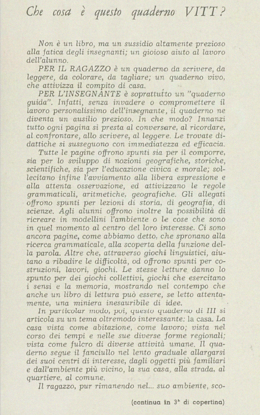 Examining Manzi today also involves exploring the opportunities presented by educational technologies and the advent of distance learning, starting in the 1950s. Furthermore, it involves understanding Italian children’s literature during its transformative phase, marked by its journey toward full recognition and the cultivation of a young readership. This discovery (that will lead to the establishment of Italian publishing houses specializing in children’s literature from the 1950s), will see young readers become themselves active contributors to literary creation and instrumental in the success of major publishing initiatives.