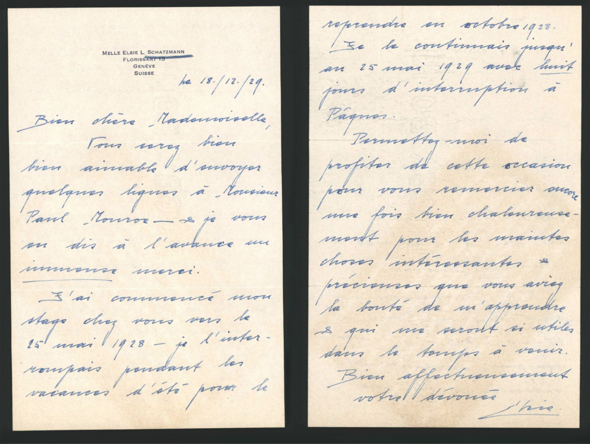 Elsie Schatzmann was born in Switzerland and undertook advanced study at the Institute of Educational Sciences at the University of Geneva.